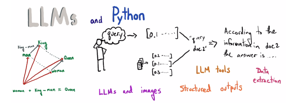 It seems like large language models are everywhere today. I found it difficult to get started in using them in my software projects, and wrote this book to help others get started with the basic ideas. It is a very practical guide to using Python with LLM libraries to do things. We start by describing how text can be represented as vectors. This is eventually important for looking up documents. Then, we introduce text generation with ollama. After introducing that, we introduce the idea of retrieval augmented generation where we use the text vectors to find documents that are similar to your prompt. We briefly describe what LLMs can do with images. We conclude with an outlook on agents and frameworks in LLMS.